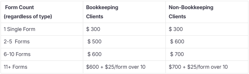 Collective provides end-to-end support for preparing, issuing, and electronically filing 1099 forms on behalf of clients each year. Clients with active bookkeeping services receive preferred pricing.